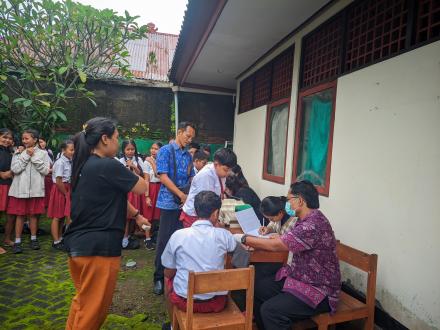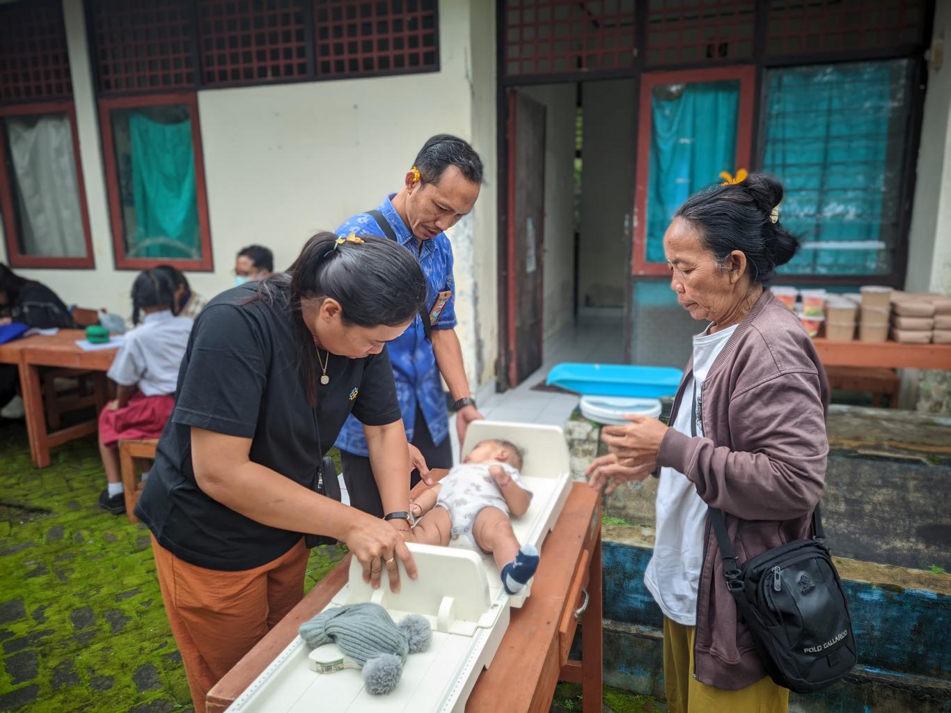 Sebanyak 25 balita hadir untuk memperoleh pelayanan kesehatan berupa imunisasi lengkap, pemantauan tumbuh kembang anak, serta pemberian Pemberian Makanan Tambahan (PMT) dan penyuluhan.