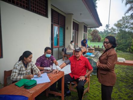 Sebanyak 23 lansia mengikuti pelayanan kesehatan yang meliputi pengukuran tekanan darah, penimbangan berat badan, pemeriksaan gula darah, serta pemberian PMT.