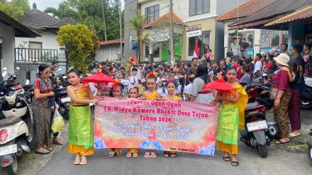 Dalam rangka menyambut Hari Raya Nyepi Tahun Baru Saka 1948, siswa-siswi TK Widya Kumara Bhakti Desa Tajun menggelar kegiatan Parade Ogoh-Ogoh pada Minggu, 15 Maret 2026, yang bertempat di Bale Banjar Desa Adat Tajun. Kegiatan ini dilaksanakan sebagai bentuk pengenalan tradisi dan budaya Bali sejak usia dini, sekaligus menumbuhkan rasa cinta terhadap adat dan budaya kepada para siswa.