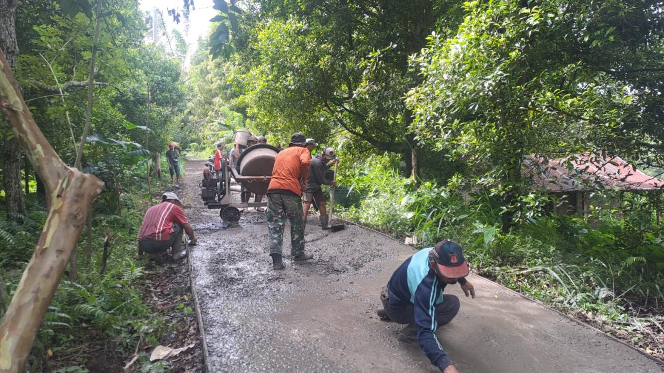 Pelaksanaan pembangunan rabat beton jalan desa Tahun 2025 sebagai upaya meningkatkan insfatruktur jalan lingkungan guna memperlancar akses masyarakat.