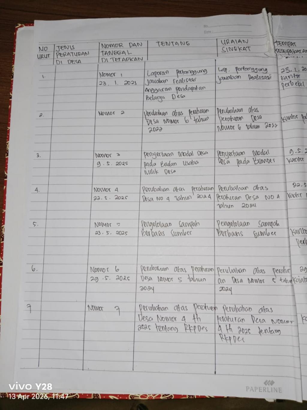 - Daftar Peraturan Desa Tajun Tahun 2025.